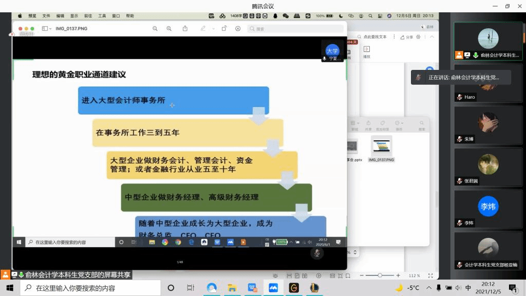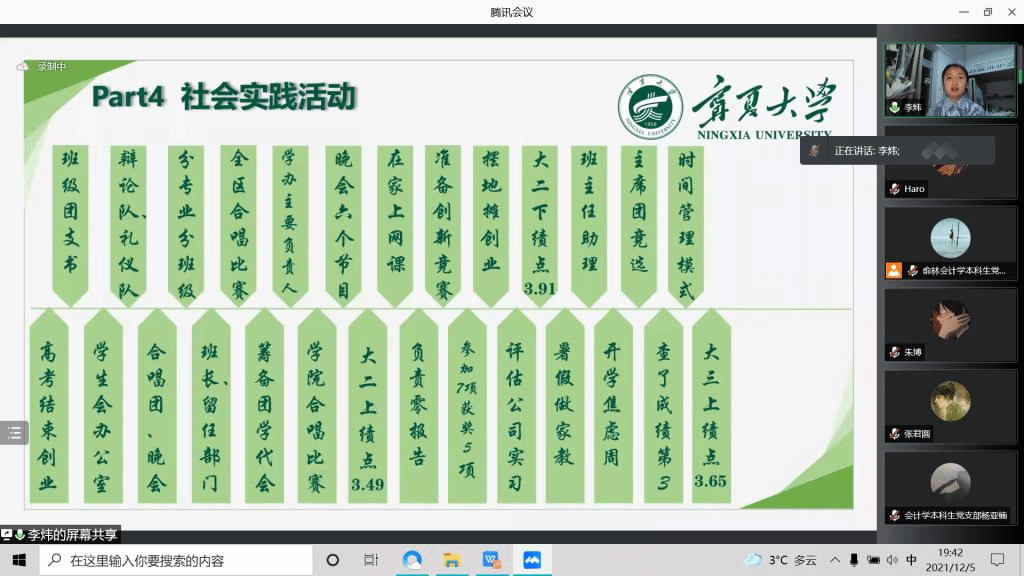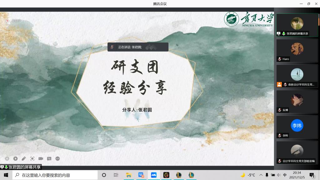 召开了会计学本科生党支部“我为群众办实事”系列活动之保研经验线上分享会。本次会议邀请到保研学生李娜、杜瑜、马小荣、李炜、兰云丽、张君圆进行分享,学院部分学生参加此次会议,会议由俞林主持。