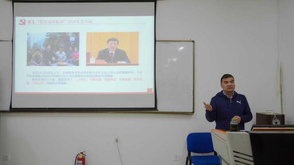 马建宏老师结合自身成长和这段时间学习党史的感受,向党员们讲解学习党史的目的和意义,并从红色精神的由来及内涵和在新时代的传承与弘扬两个方面讲解了“开天辟地,敢为人先”的红船精神、“坚定信念,艰苦奋斗”的井冈山精神、“坚韧不拔,自强不息”的长征精神、“解放思想,实事求是”的延安精神、“永不停步,坚持革命”的西柏坡精神、“艰苦创业,无私奉献”的沂蒙精神、“永不懈怠,一往无前”的当代挑山工精神、“精准务实,不负人民”的脱贫攻坚精神、“举国同心,命运与共”的抗疫精神等红色精神。马建宏老师引经据典,结合历史为党员青年讲述处于每一种精神诞生时期党员们敢于担当、勇于奋斗的品质。