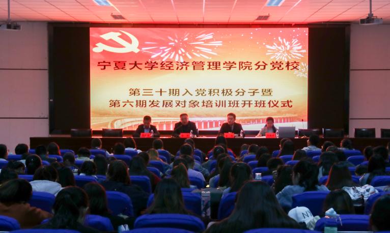 在贺兰山校区文荟楼一楼东报告厅组织召开第三十期入党积极分子暨第六期发展对象培训班开班仪式,院党委书记张桓,院党委副书记李琦,学生工作办公室主任、工商管理本科生党支部书记黄旭兴,辅导员、会计学本科生党支部书记何韶华出席本次开班仪式。开班仪式由院党委副书记李琦主持。
