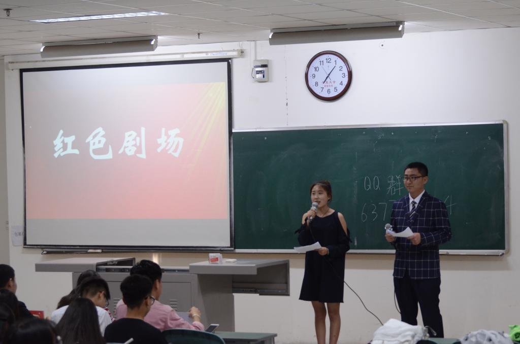 贺兰山校区文科楼132室特举办红色剧场活动。学院党委副书记李琦、学办老师纳莉多、学生会主席郭亮、团委副书记王雪菲和王雯慧以及本期入党积极分子与建党对象到场参加活动。