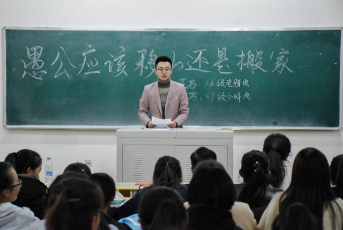 新生赛结束后便是经管辩论队带来的表演赛。“愚公该移山还是该搬家?”一个饶有兴趣的辩题,引起了同学们的深刻思考。且看此场,是愚公移山伟大精神与客观实际间的争锋相对。16级辩手以成熟稳重的姿态气贯长虹、乘风破浪;17级辩手以长江后浪推前浪、初生牛犊不怕虎之气势当仁不让。最后,双方旗鼓相当,各有千秋。评委老师作出了精彩的点评:“一个好的辩题本身没有对错,重点在于思维的过程,在于怎么去说服对方。”