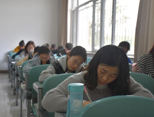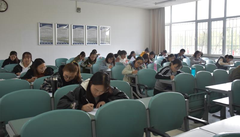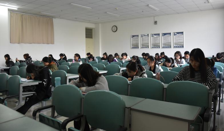 于贺兰山校区文荟楼进行了禁毒知识考试。16、17级全体学生准时到场参加。