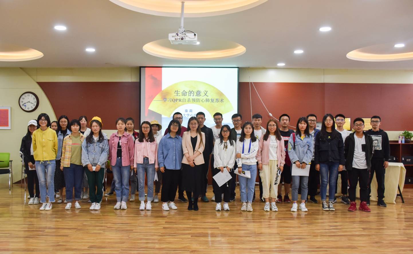 一进入心理培训教室,汪峰演唱的《怒放的生命》便在同学们耳畔响起,激昂高亢的旋律和浑厚有力的声音讴歌了生命的激情和向上的韧劲。本次心理培训辅导活动的主题是“生命的意义之学习QPR自杀预防心肺复苏术”,活动刚开始,秦莉展示了一张海天相接的图片和《我不是药神》的剧照,让大家说出不同的图片传达给自己的感受,从而获得不同状态的生命体验。紧接着,秦莉介绍了每个人的必有议题:死亡、自由与责任、孤独和无意义感,每个人都无法避免生命的有限性,但我们要在有生之年努力寻找生命的意义,向死而生,活到淋漓。接下来,她解释了QPR自杀预防心肺复苏术,QPR即询问(Question)、劝说(Persuade)、求助(Refer)三个英文单词首字母的缩写,通过这种方式能够用积极的行动,帮助处于困境中的人重燃希望。询问环节是在和对方建立良好的关系后,以一种关心的语气使其感到温暖的方式询问;劝说环节是能对对方的遭遇感同身受并充分理解,帮助对方树立积极的信念;求助环节是在对方允许并保证安全的情况下向有关人员求助。而后,秦莉请同学示范了这三个环节,并扮演被劝说者,让同学们扮演关切者,通过实践掌握这种方法,从而传达给更多的人。活动渐入尾声,秦莉寄语大家“应将心中的温暖、爱和光明传递,让更多人的生命天空拥有阳光的灿烂”,此次活动在老师和同学们的集体合影中落下帷幕。