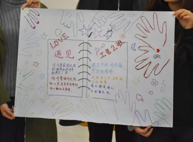 一段嗨翻全场的音乐瞬间引燃现场,有趣的手指操将气氛调动得更为热烈。“微笑接龙”中,一句“三生有幸遇见你”,让来自五湖四海的2018级小可爱们倍受触动。相视一笑,是友谊升温的感觉!小游戏“无家可归”惹得现场欢笑连连,甚至游戏失败的惩罚也为现场更添欢乐;而大学班级同学关系“三个最”——我最高兴的是?我最担心的是?我最希望的是?这三个看似简单的问题,却深深触动着这群新入大学的00后们,他们在纸上认真书写了答案,把内心深处的声音、对大学的期盼跃然纸上。接近尾声,有趣的“班级蓝图大PK”落下这场心理辅导的帷幕,同学们以组为单位将描绘班级蓝图,现场温馨一片。