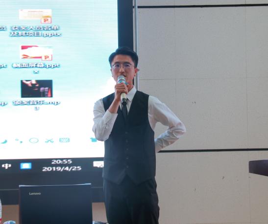 而后进行的是“挑战杯”颁奖仪式。2017级研究生宋欣代表获奖学生上台发言。她讲到,项目的成功不仅有赖于精确的选题、严谨的学术态度和密切的团队合作,老师的支持和指导更是不可或缺。王嘉豫宣布获奖名单后,获奖代表依次上台领奖,领导教师们分别与其合影留恋。