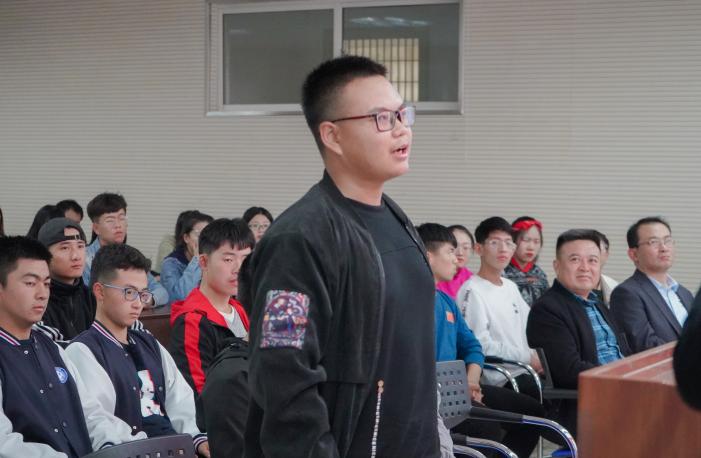 学生踊跃发言,提出了许多有深度的问题,沙建平就学生提出的互联网金融风险、就业前景和个人职业发展等问题,从个人工作、生活经历方面给予了解答,为学生们今后的人生道路指点迷津。同时鼓励大家要学好知识,树立正确的人生观、世界观和价值观,坚持自己的理想,为实现自己的人生价值而努力奋斗。