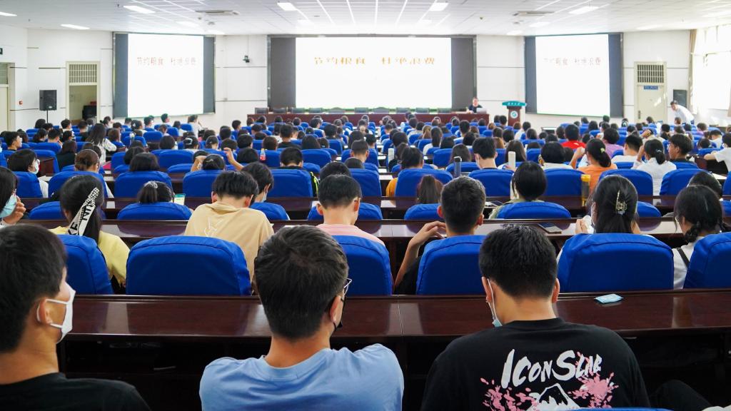 于贺兰山校区文荟楼东报告厅举办了“杜绝餐饮浪费教育”讲座。后勤保障部饮食服务中心张萌菁担任主讲嘉宾,亚新体育