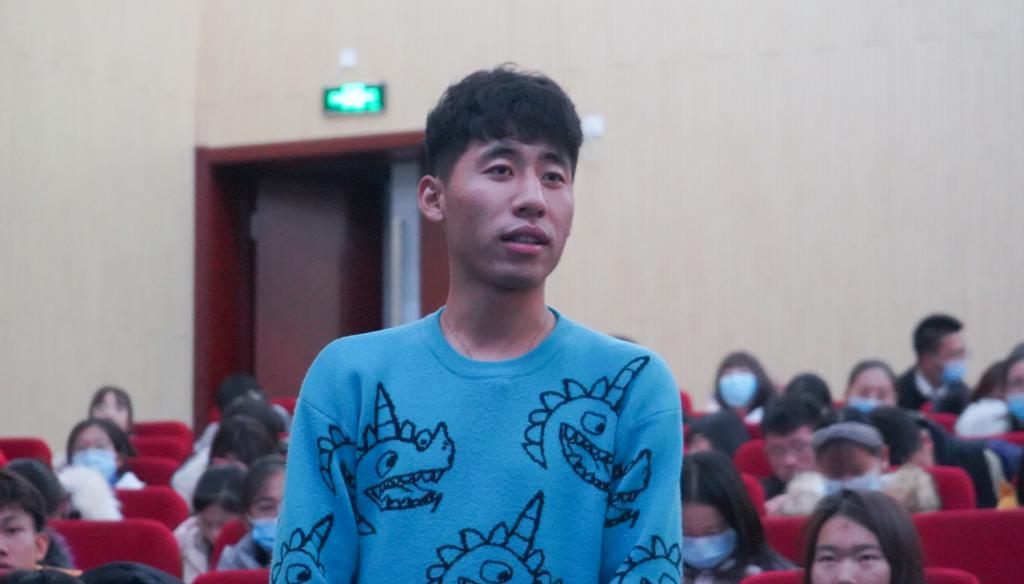 陈娜娜从自身考研的经历说起,详细地剖析了考研的题型,分享了一些相关的解题技巧,并告诉同学们书山有路勤为径,“多做多练”才是登顶的唯一方法;付小娟从学习、生活、未来发展三个方面精炼简要地分享了她的大学生活,并鼓励同学们要树立宏伟目标、坚定理想信念,心有所向,才能终有所得;杨百慧告诉同学们要充分利用大学时光,在提升个人能力、培养健全人格的同时,也不忘保持一颗能在繁忙中停下脚步,欣赏生活细微处的美好的自然心;李金凤用幽默诙谐的语言分享了她的快乐听课法、创造性总结法等一系列创意学习方法,并在日常生活、专业建议方面提出自己的观点与看法,令在场同学颇有感悟。在后续的答疑环节中她们对“考研还是考公”“转专业”等大学生关注的热点问题进行了解答,见解独到,使同学们受益良多。