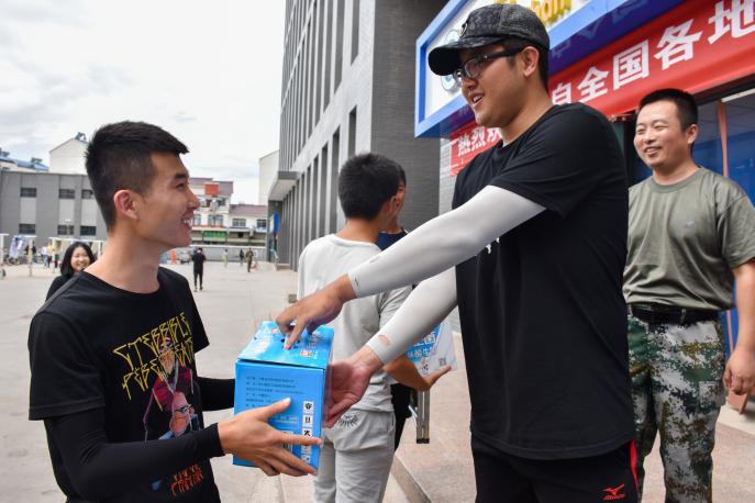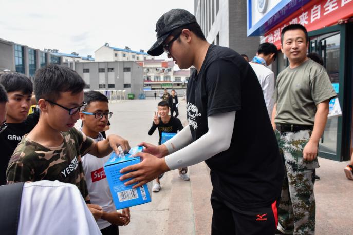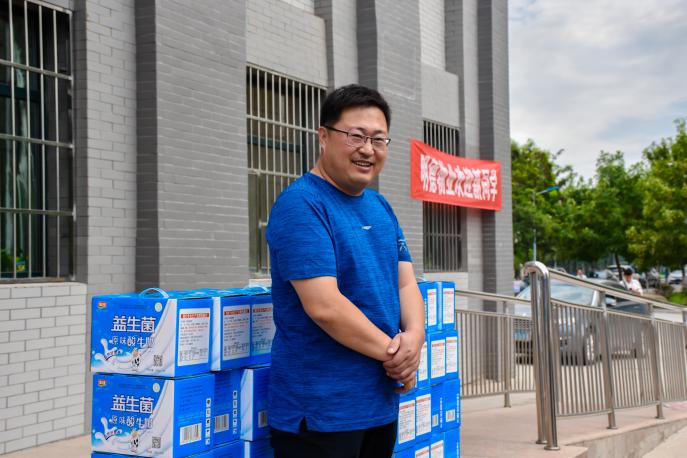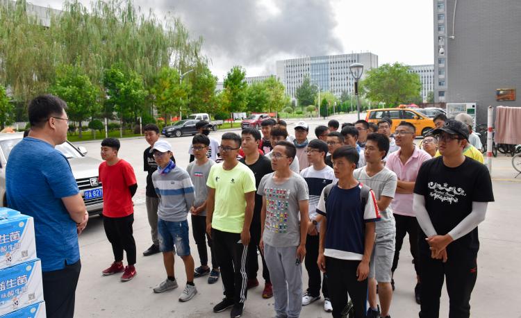 慰问在一片欢声中开始,程胜利对17级六十名同学长达三十天的辛苦排练表示感谢。在这三十天中,不少同学的肤色变化肉眼可见;三十天前他们还是细皮白皙的小鲜肉,三十天后,炙热的阳光使他们拥有了健康的小麦色。可经管人永不放弃,下暴雨时,他们身披雨衣坚持训练,雨水打湿了他们的脸庞,但从未有人退出,用他们的话来说“参演时,每个演员都将是一只骄傲的鸟——载着希望与梦想,矢志不渝地向前飞翔”。而后,学院领导为六十名演职人员分发慰问品,程胜利说道“我们老师经常看你们训练的视频,我们为你们而骄傲!”