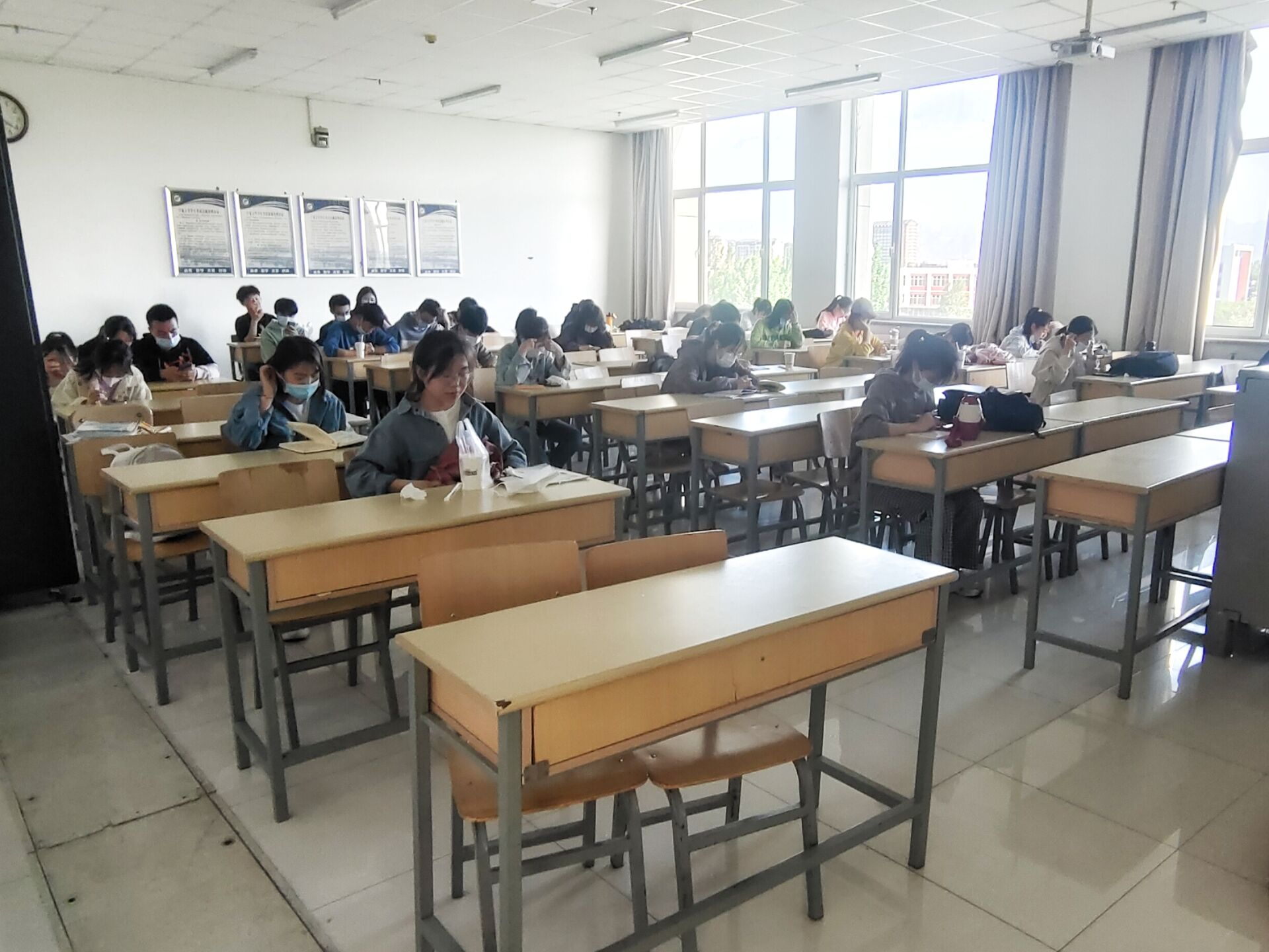 当第一缕阳光照进教室,晨读悄然开始。同学们朝气蓬勃,清朗的嗓音悠扬诵读的是四六级单词、宛转而出的是优美如诗的英语长句。读书声随清风飘扬在校园的朗朗蓝天之上。