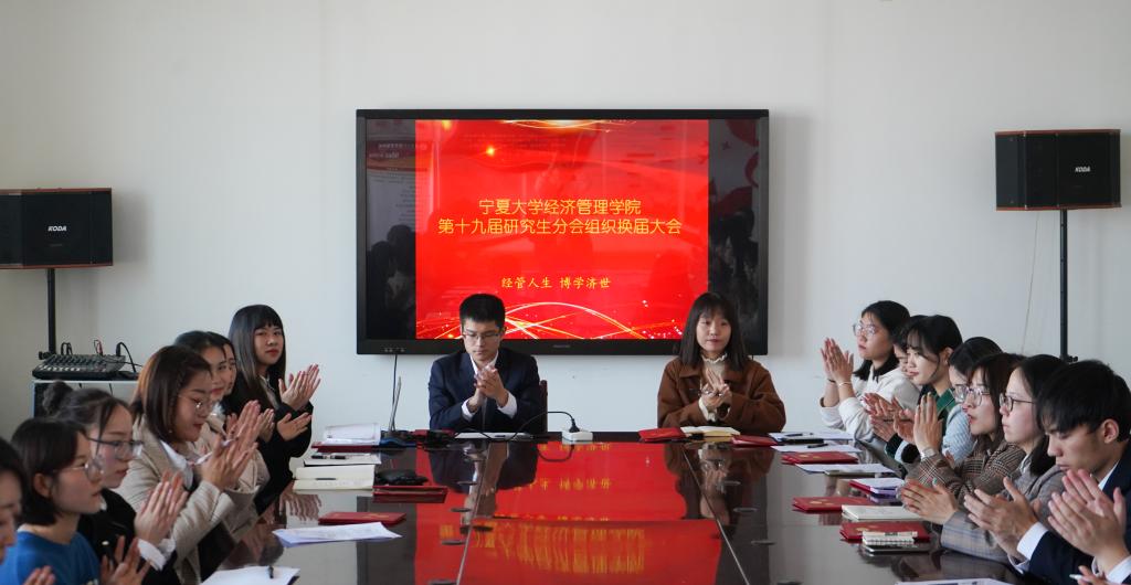 何韶华宣读新一届研究生分会学生骨干任命名单后,刘晓伟为研究生分会主席团成员、各部门主要负责人颁发聘书,张景为各部门负责人颁发聘书并合影留念。第十八届研究生分会执行主席丁丽总结了其在研究生分会的工作情况,分享了研究生分会与自身价值提升的相辅相成经验,并鼓励新一届研究生分会成员在未来的工作中再创佳绩。第十九届研究生分会执行主席马滢概括了新一届研究生分会的整体工作思路。新一届研究生分会是一个新的起点,在承接上一届研究生分会良好的工作经验基础上,进行研究生分会工作方式转型升级,将各部门统筹兼顾协调运作,为更好地服务学院师生进行整合。第十七届第二期学生会执行主席李炜对学生会工作进行了介绍,希望在今后的工作中能够与研究生分会加强沟通、协力合作。
