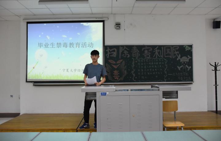 贺兰山校区文荟楼130教室开展了毕业生禁毒教育活动,全体毕业生到场参加。