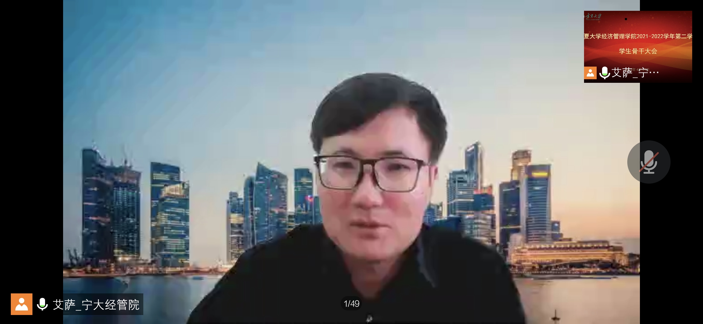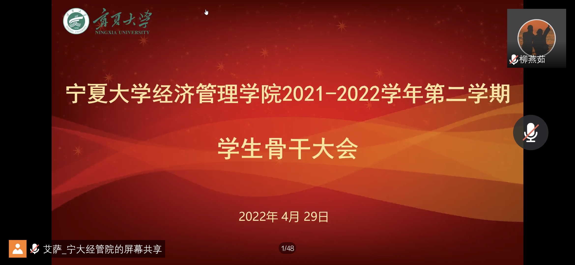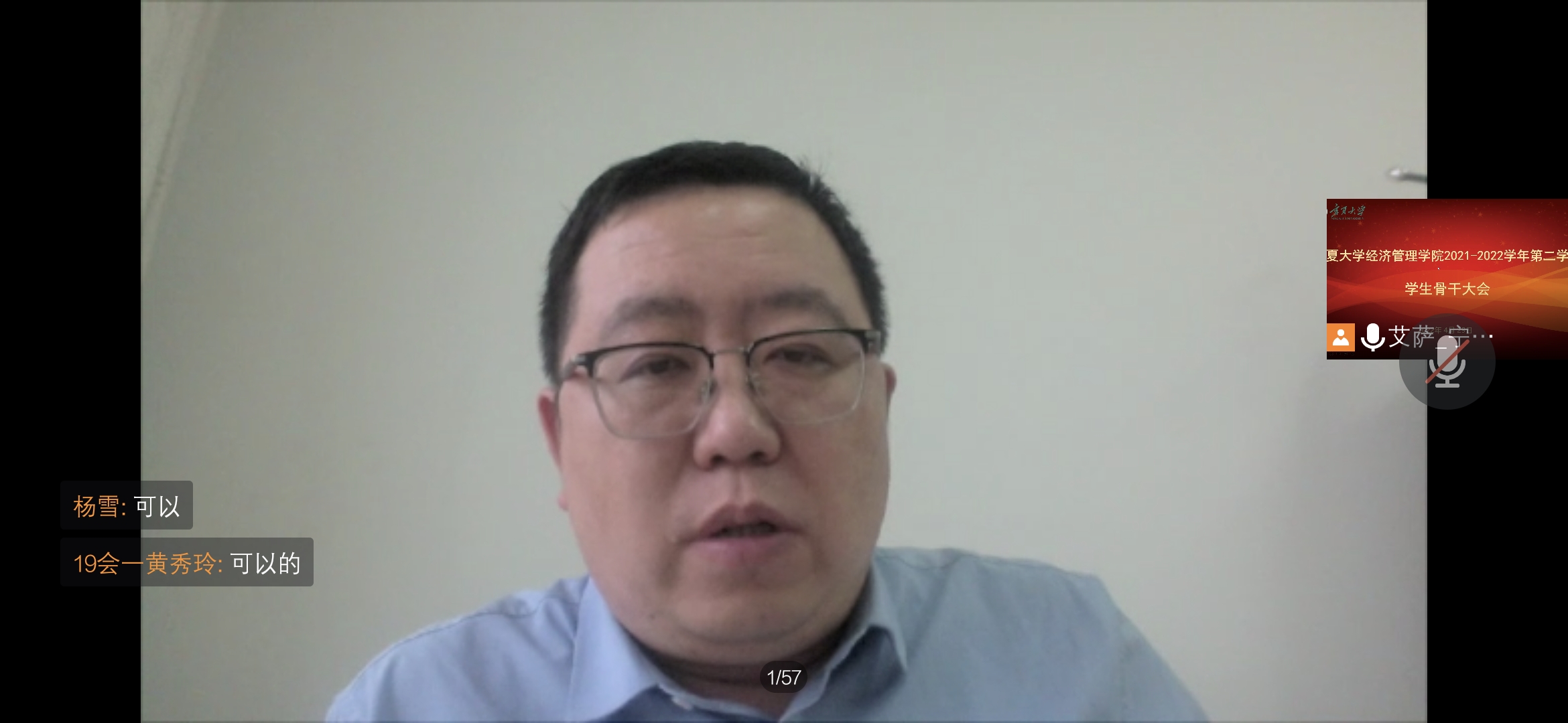 线上召开2021—2022学年第二学期学生骨干大会,学院党委副书记马建宏、常江,党建秘书姚硕,研究生辅导员李立鹏、李阳,学生工作办公室辅导员艾萨•阿尤普、孙文元、禹文杰,全院学生骨干参加会议。会议由艾萨主持。
