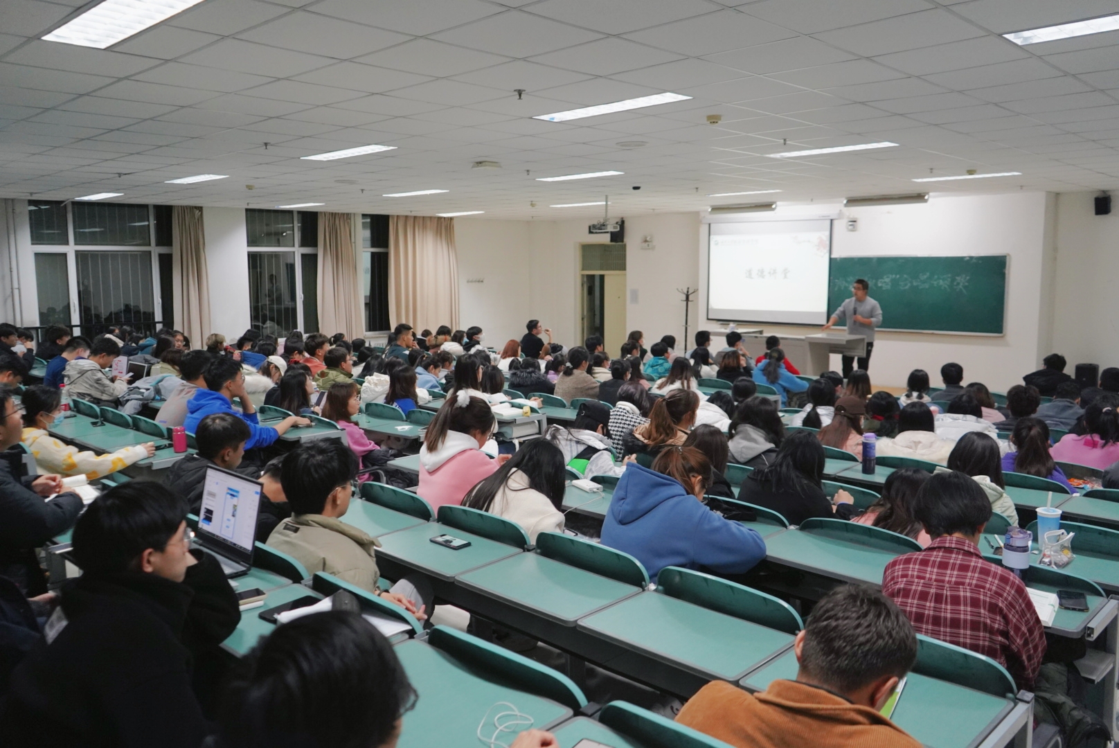 禹文杰通过讲述身边的事例告诉同学们诚信对于一个人学习、事业、交际的重要性。“有德无才,才不足以助其成;有才无德,德必铸其奸。”禹文杰指出道德始终位于人性的制高点,青年一代作为社会主义的建设者与接班人,要始终严格要求自己,以“诚”待人,以“信”行事,用实际行动塑造良好的学风、考风,诚信应考,创造佳绩。