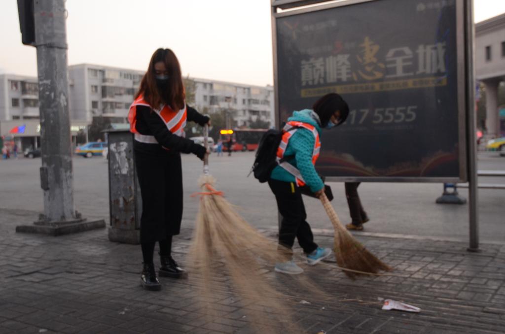 早上6点40分左右,夜色尚未褪去,马路上人车稀少,还未熄灭的路灯散发着微光,参与活动的建党对象已集合完毕,穿上橙黄色的环卫马甲,带着打扫工具整装待发。在环卫工人的带领与指导下,建党对象分为两组,分别对东、南两条街道进行清扫。虽已是寒冬,同学们的脸被冻得通红、手已经僵住,也不放过一片纸屑、一个瓶子。所谓众人拾柴火焰高,全体建党对象齐心协力、分工合作、互相帮助,整条街道在同学们的认真打扫下变得干净整洁,赢得环卫工人与过路人的称赞。天渐渐亮了起来,冬日的暖阳冉冉升起,环卫体验活动也接近尾声。最后,建党对象进行了拍照留念,活动圆满结束。