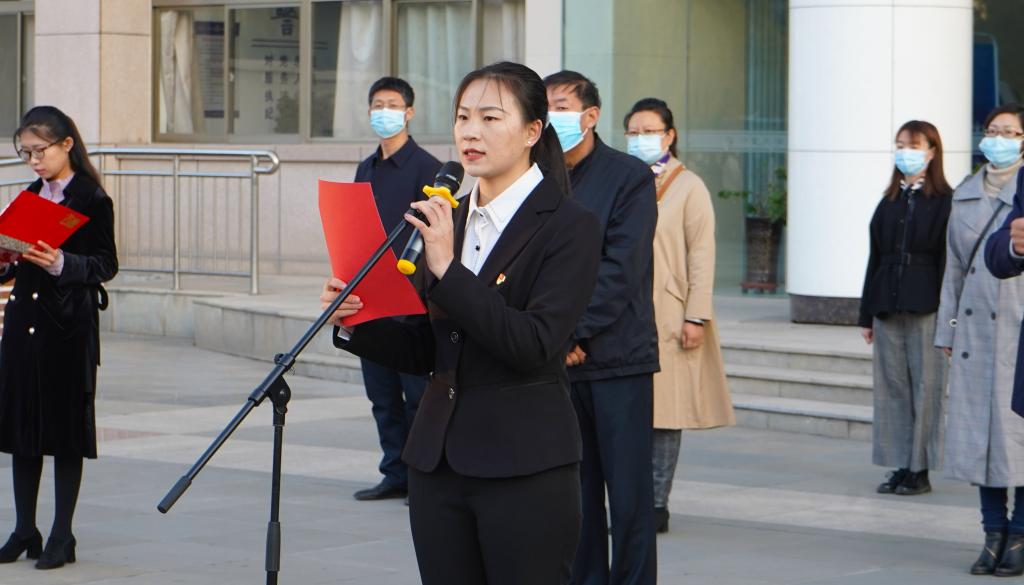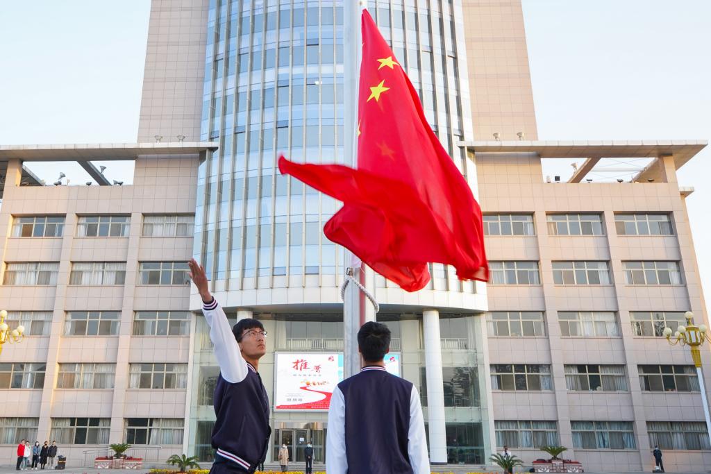 在贺兰山校区德勤楼前举行隆重的升国旗仪式。学院党委书记朱伟,院长杨国涛,西部发展研究中心主任、副院长黄立军,院党委副书记程胜利,副院长冯蛟、张逸,西部发展研究中心副主任王国庆、董小焕,学院各系办公室主任、专业负责人和教师代表及全体本科生、研究生参加了此次仪式。仪式由学生工作办公室负责人何韶华主持。