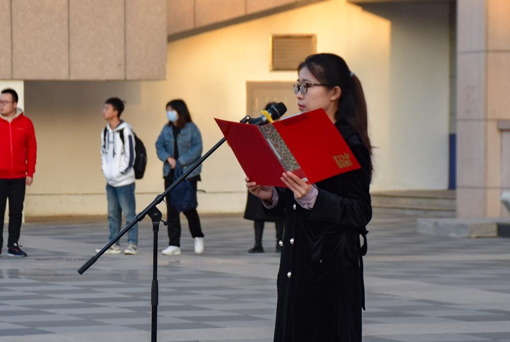 学生代表2017级农林经济管理专业本科生倪雪作国旗下演讲。她以习近平总书记的一句话“我国广大青年要坚定理想信念,培育高尚品格,练就过硬本领,勇于创新创造,矢志艰苦奋斗,同亿万人民一道,在矢志奋斗中谱写新时代的青春之歌”为中心,结合自己大学三年的学习生活经历,鼓励同学们长远思考,学会学习,把认真对待工作和学习文化知识统一起来。