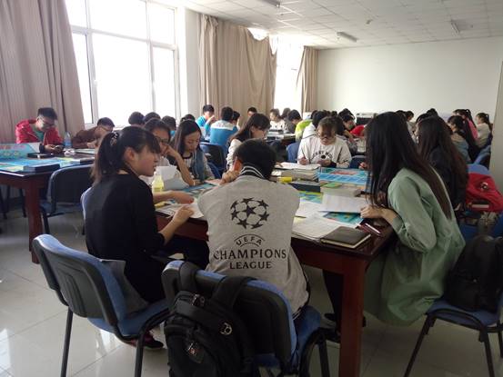 本次比赛分为专业组和非专业组两类,共计十二个组。沙盘模拟比赛通过模拟经营六年的企业经营,过程覆盖从生产到销售的,考验参赛选手的团队合作能力、目光的长远性以及市场竞争策略运用的灵活性。早上八点,各参赛小组和裁判准时到达,比赛在紧张严肃的气氛中开始了。各个团队分工明确,同学们分别担任财务、营销、生产、采购等角色,大家相互配合,每位参赛选手都在细致的生产计算及摆盘规划中认真地思考市场竞争方案的可行性,效率极高地完成了第一年的财务报表。随着经营时间的推移,方案的执行难度越来越大,所需的时间也越来越长。参赛选手的注意力高度集中,直到裁判宣布前三年的比赛结束,选手们进行中场休息。随后选手们又投入紧张的比赛中,直至晚上七点比赛正式结束。