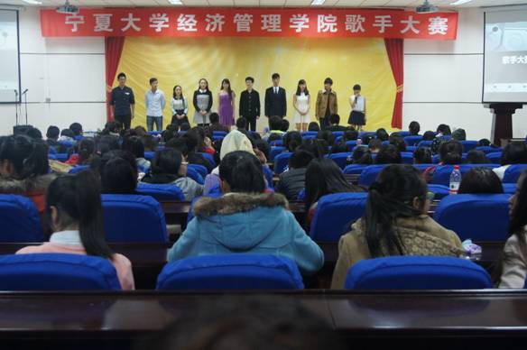 老师、学生会主席张鹏龙、团委副书记吴博文、学生会副主席左尚等。本次大赛特邀林倩、马楠、丁哲担任比赛评委。唐正、高梦燕担任此次比赛主持人。经管学院2014级全体新生观看了此次比赛。 经过初赛的层层选拔,共有十名优秀的选手进入了本次决赛。决赛分为自我介绍、情歌对唱、魅力独唱三个环节。比赛开始前学办辅导员
