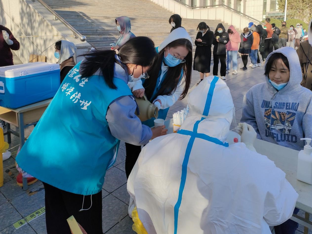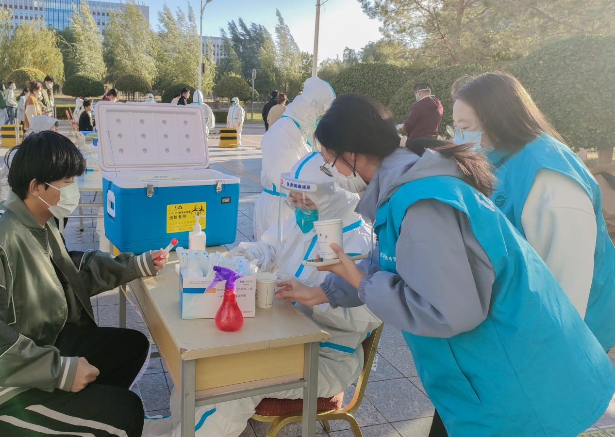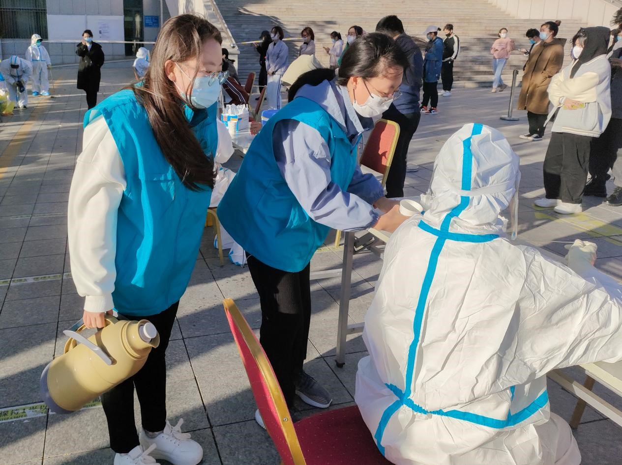 10月8日下午,亚新体育 贺兰山校区开展了核酸检测工作,在学院团委的部署下,经管志愿者们为医护人员送热水,在寒风凛冽中彼此守望。