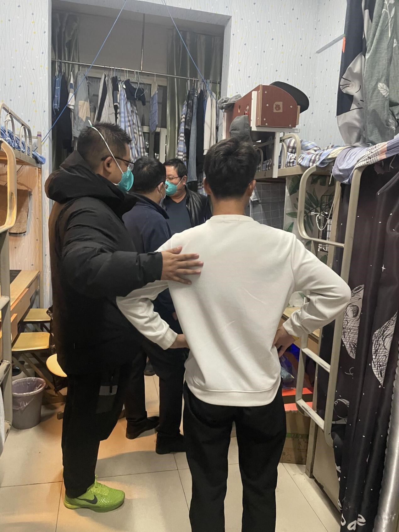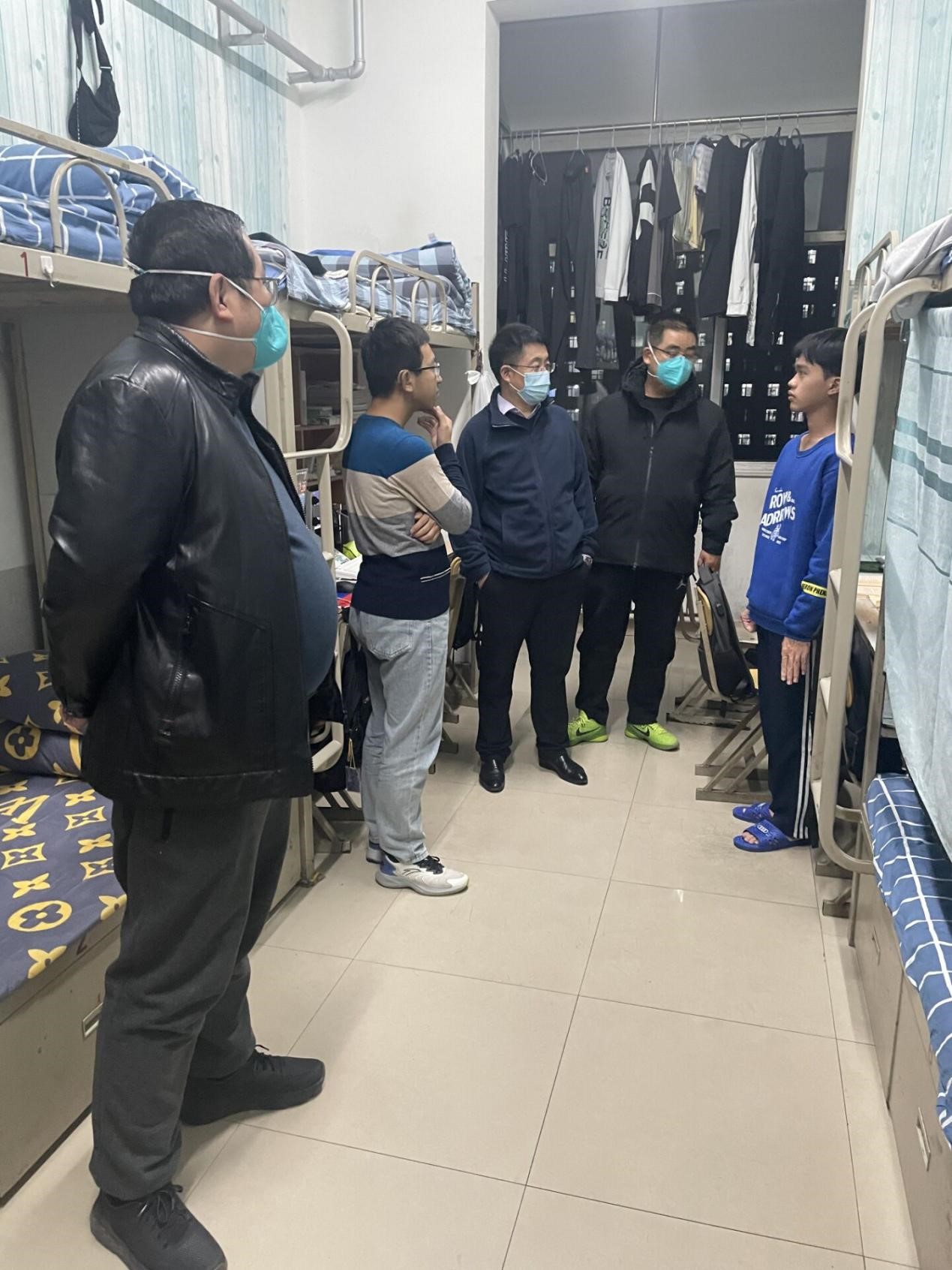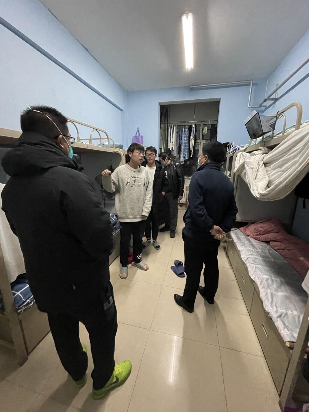 走访过程中,老师们与同学们就近期学习情况和生活状态进行了亲切交流,鼓励同学们以积极认真的态度对待线上课程,同时提醒同学们注意宿舍用电安全。老师们也要求同学们严格遵守疫情防控期间的校园管理要求,做好疫情防控常态化下的自我管理,养成良好生活习惯,保持乐观向上的生活态度,共同营造良好的学习生活环境。
