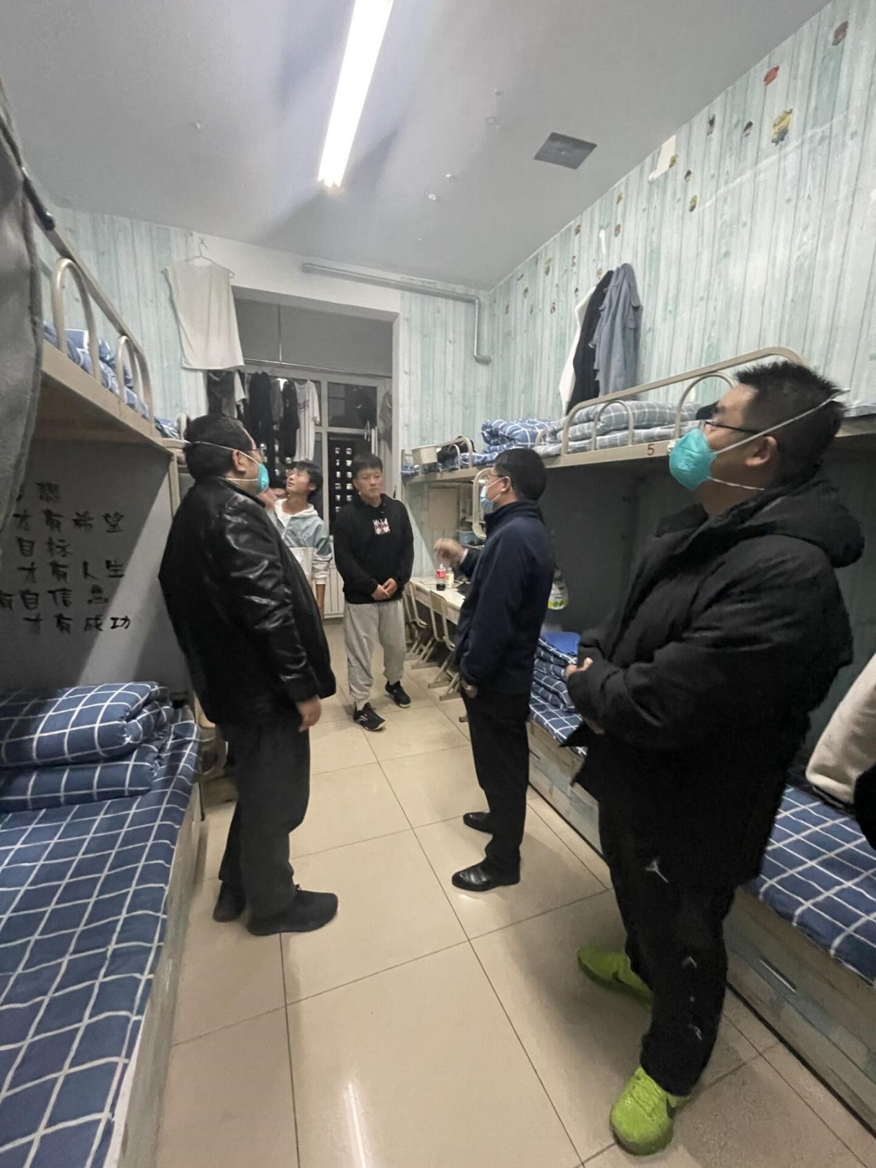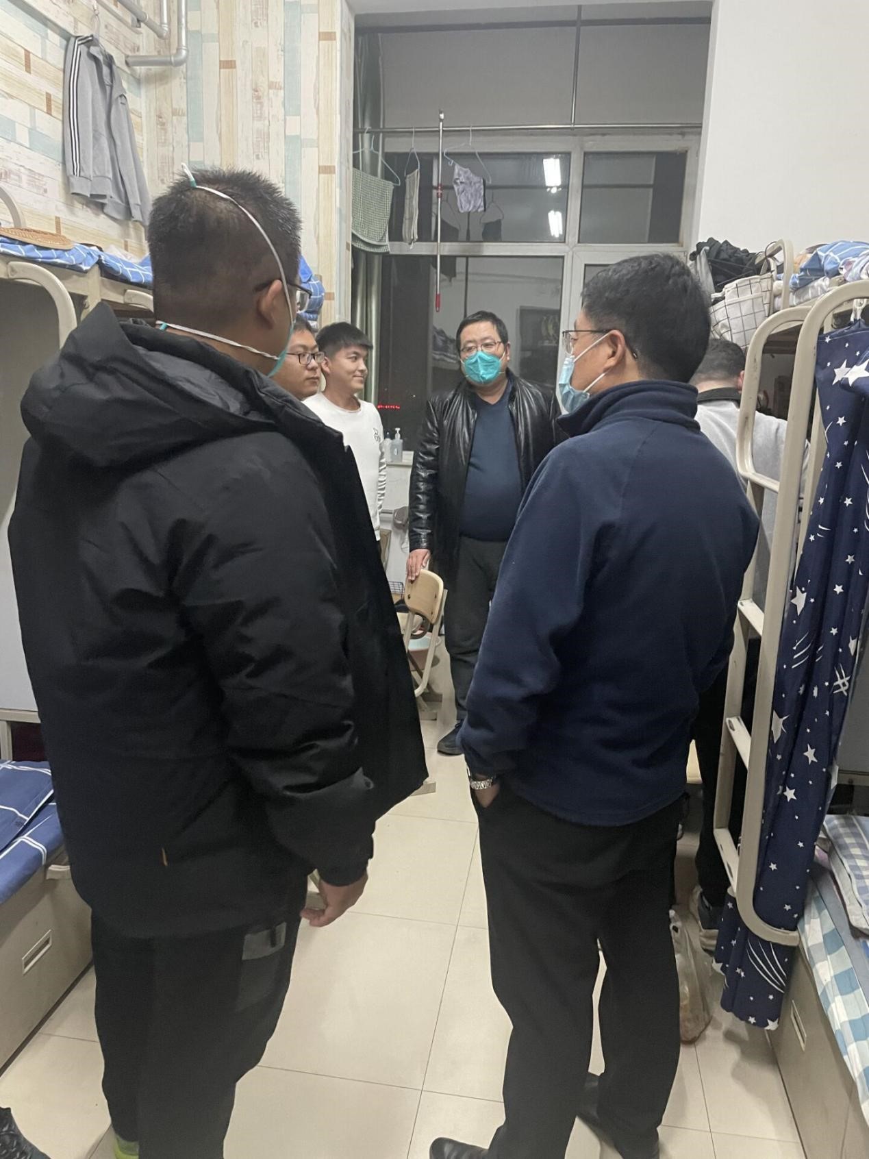 党委书记崔明堂,党委副书记常江,学生工作办公室辅导员孙文元、姚硕深入学生宿舍走访慰问。