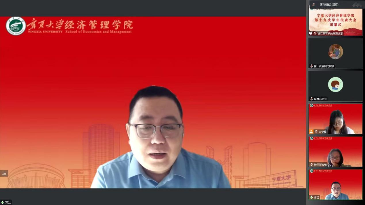(西部发展研究院)党委副书记常江、黄旭兴、学生工作办公室负责人艾萨·阿尤普、团委副书记孙文元、2021级辅导员老师姚硕出席会议,闭幕式由宋文静主持。