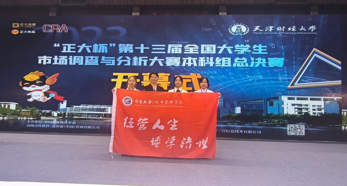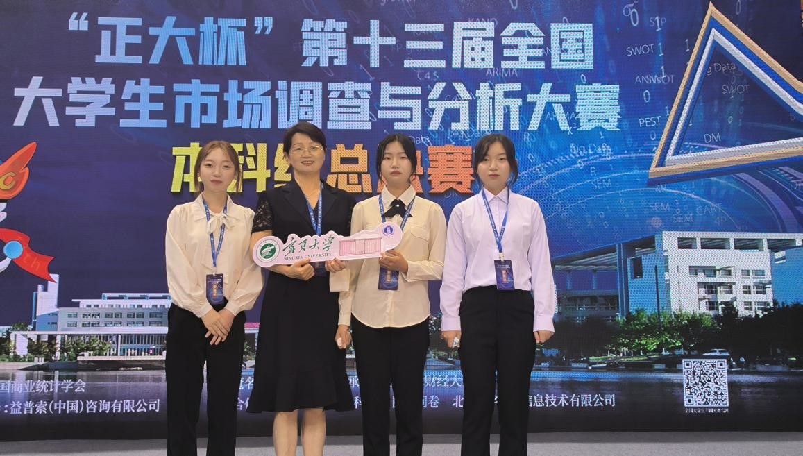 会计学专业王金凤和谈美君、市场营销专业买文慧、马克思主义学院思想政治教育专业吴枝腾和数学统计学院数学与应用数学(金融数学)专业海娟。他们利用不同学科交叉融合的专业知识,聚焦于宁夏本土的旅游课题,不断完善调查报告和表现形式,共同配合、砥砺奋进,在全国赛场上凝心聚力,最终斩获国家级二等奖。
