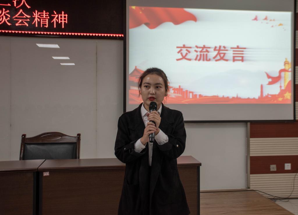 交流发言环节上,老师同学们畅所欲言。南疆女孩帕提古丽很有感触,她表达了对国家的衷心感谢,党的惠民政策让新疆籍同学有了更好的学习条件,也使得其他同学有机会了解更多新疆故事。针对同学们感兴趣的新疆国语教育发展情况,李有亮谈到近年来新疆国语教学进展顺利,基础教育设施得到明显改善,学校也在采取相应措施来帮扶学生。他建议学校可以组织有关活动来促进民族交流。王娜老师提到作为老师要多关心学生,新疆同学克服了各种困难,可以成为同学们的表率。我校对新疆同学的关爱,正是我校以人为本办学理念的生动体现。帕哈尔丁老师向同学们分享自己求学时期的经历,并以此鼓励同学们在大学阶段不断追求卓越,同时也要注重各民族同学之间的交流、交往、交融、交心。