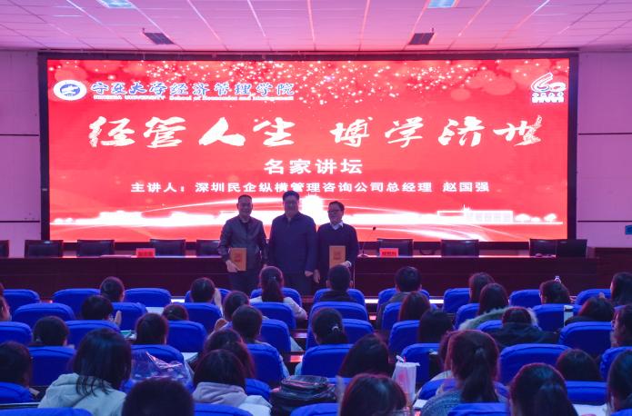 在贺兰山校区文荟楼东报告厅举行名家讲坛活动,宁夏宝丰集团副总裁贺浒浜先生,深圳民企纵横管理咨询公司总经理赵国强先生担任本次名家讲坛的特邀嘉宾,亚新体育