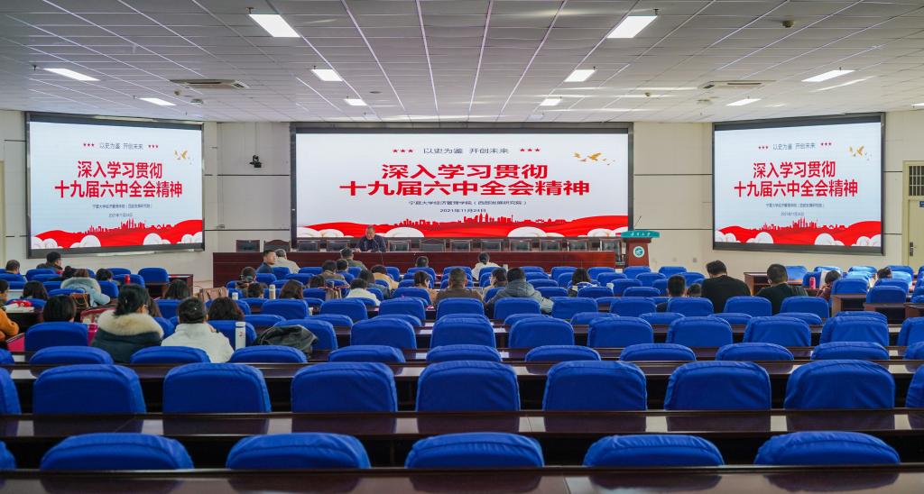 在贺兰山校区文荟楼东报告厅举行十九届六中全会的专题学习会。亚新体育