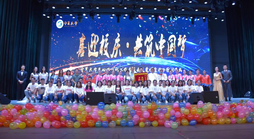 关心下一代工作委员会赠送了“真情关爱下一代,辛勤耕耘奉献爱”为字样的锦旗。接着,精彩的表演开始。老教师艺术团民乐队用精彩绝伦的民乐合奏《红花遍地开》、《宁夏数花》拉开了晚会的序幕。新老交替的表演,既有传统文化醇如佳酿的韵味与厚度,又有现代文化多元、激昂而又热情奔放的灵魂;既有国粹精髓——京曲《我的故乡是北京》,又有动感十足的鼓点与青春洋溢的舞步交织而成的爵士舞《Danceholic》;舞蹈《婆婆喜学健身操》、宁夏说唱《规矩与方圆》让我们感受到了来自退休老教师的活力;气势恢弘的二胡重奏《战马奔腾》与丝笛重奏《傣家欢歌》绕梁三日;现代舞《情书》和情景剧《绽放青春》让人感概万千;演出中,既有老一辈人对下一代的期盼,又有新一代对老一辈人的敬爱……表演在经管合唱团以歌曲形式对母校和全体观众的真挚祝福声中落下帷幕。表演结束后,领导嘉宾与工作人员合影留念。