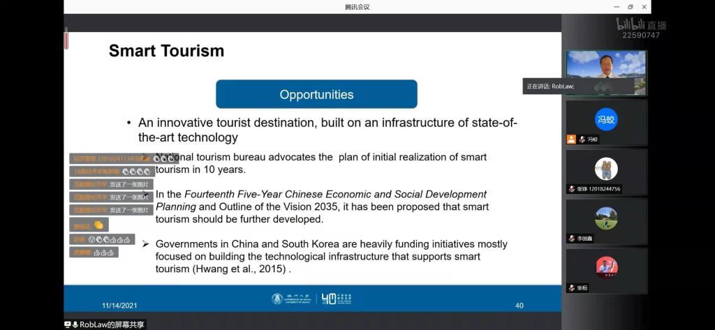 贺兰山特聘学者、哈尔滨工业大学李国鑫教授为本次讲座致开幕词。她表示,Rob Law教授是国际顶尖的旅游营销学者,相信大家在讲座中会大有收获。此外,本次讲座为贺兰山论坛·数字营销系列的开端,希望大家积极参与到讲座中来,不断提升自身的学术视野和能力。本次讲座主要围绕酒店网站功能展示、基于APP的智能旅游、机器人场景运用三个主题展开。