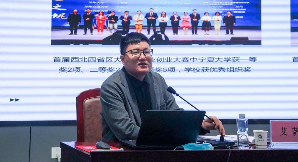 党委副书记程胜利,外国语学院党委副书记余洁,创新创业学院副院长顾珍和各学院就业创业大赛负责老师出席此次推进会,何文栋主持会议。