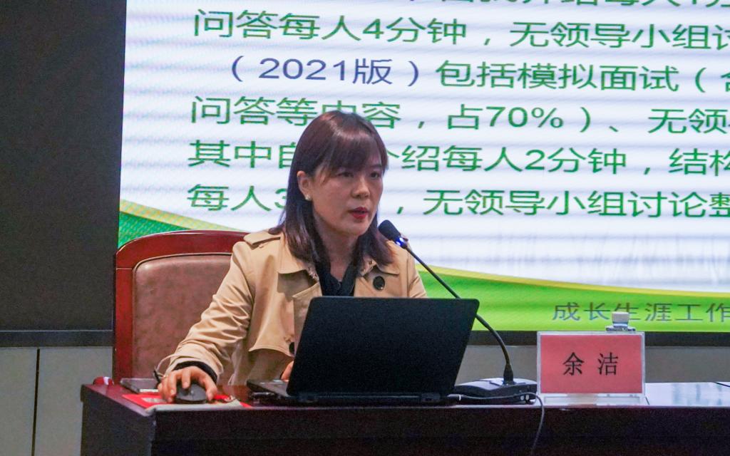 大赛组委会成员艾萨·阿尤普对大赛举办时间、参赛作品递交方式、各赛道设置、评分机制与作品要求等相关内容,向各学院代表做相应解读。大赛承办单位创新创业学院副院长、“拾光”生涯工作室负责人顾珍做“职业生涯规划组”培训。顾珍阐述了职业生涯规划的内涵与意义,她解释道,职业生涯规划以培养生涯规划能力为目的,以选择具体职业就业为目标,包括了自我认知、职业认知、职业决策等方面。针对职业生涯规划的理论和方法,顾珍从目标准备、职业生涯规划、自我探索等方面出发,详细讲述了各方面适用的方法与各类分析图表数据。外国语学院党委副书记、成长生涯咨询工作室负责人余洁做“求职实践组”培训,首先她介绍了求职实践组的比赛流程,其中包括简历评审、自我介绍、模拟面试、无领导小组讨论等,强调了比赛相关资料提交的变化,建议各学院注意审核。余洁从如何帮学生打造一份展现自己的专属简历与如何将面试技巧融入日常生活等问题切入,结合自己相关工作经验,向参会老师深入起介绍了相关技巧,并对学生参赛作品进行了相应的分析。承办单位亚新体育