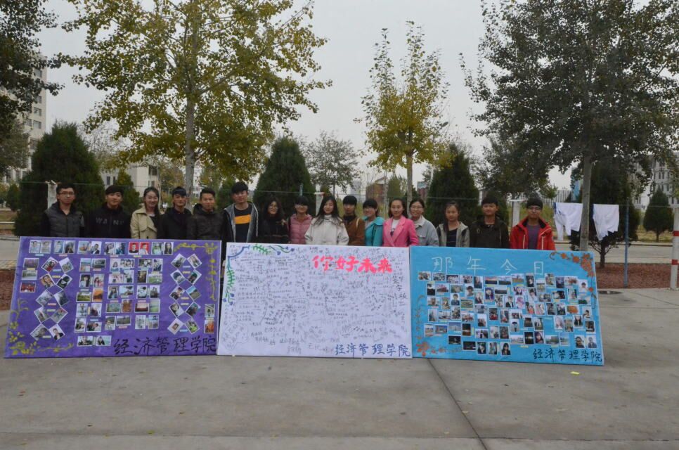 本次活动以“回忆青涩的当初,拥抱五彩的现在”为主题,分别开展了“再见,我的过去”照片展示活动和“你好,我的未来”展板签名活动。照片墙上,展出了一组组过去和现在的对比照片,或是人物照、或是校园风景照,散发出青春洋溢的气息,勾起了大家对过去的美好回忆和对未来的无限憧憬。签名展板上挤满了大家个性四溢的签名,以及一句句勉励自己的话语。现场气氛十分活跃,同学们兴致勃勃的观看着照片墙上的小伙伴大学四年的变化,积极在展板上签名写寄语。现场的抽奖活动将气氛推向了高潮。最后,活动在大家对未来的憧憬中圆满结束,这份美好定格在获奖学生的合影里。