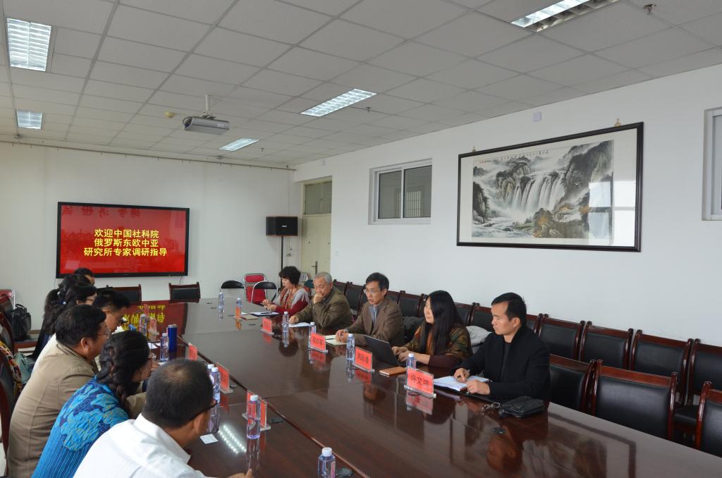 杨国涛,西部发展研究中心王国庆,阿拉伯学院白楠以及经管学院赵振宇、马晓云等部分教师代表。学院对中国社会科学院俄罗斯东欧中亚研究所专家的到来表达了感谢和欢迎。