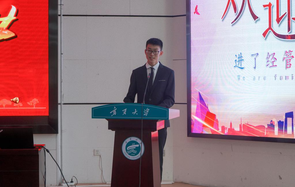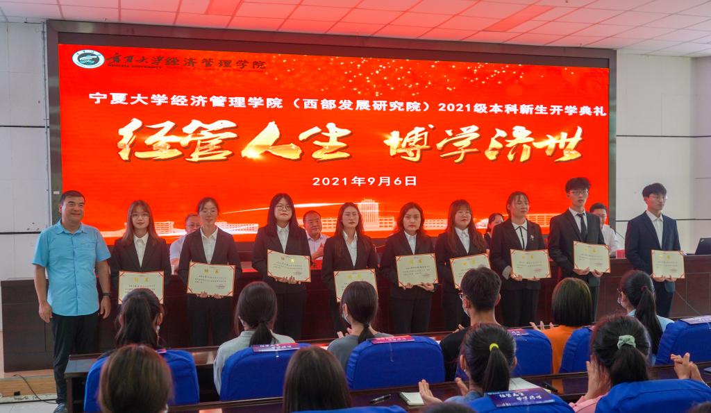 2021级本科新生开学典礼暨学科专业介绍会于贺兰山校区文荟楼东报告厅顺利举行。学院党委书记朱伟,院长杨国涛,西部发展研究院副院长马军,院党委副书记程胜利、马建宏,副院长张逸,学院办公室主任杨建武,学生办公室主任黄旭兴,MBA办公室主任杨彩玲,教学科研办公室副主任梁非凡,农林经济管理系系主任东梅,经济学系系主任刘涛,会计系系主任虎兴武,工商管理系系主任张淑萍,工商管理专业负责人朱丽娅,物流管理专业负责人、工商管理系副主任蒋紫艳,学生工作办公室辅导员艾萨·阿尤普、孙文元、禹文杰及2021级全体本科生参加此次会议。会议由程胜利主持。