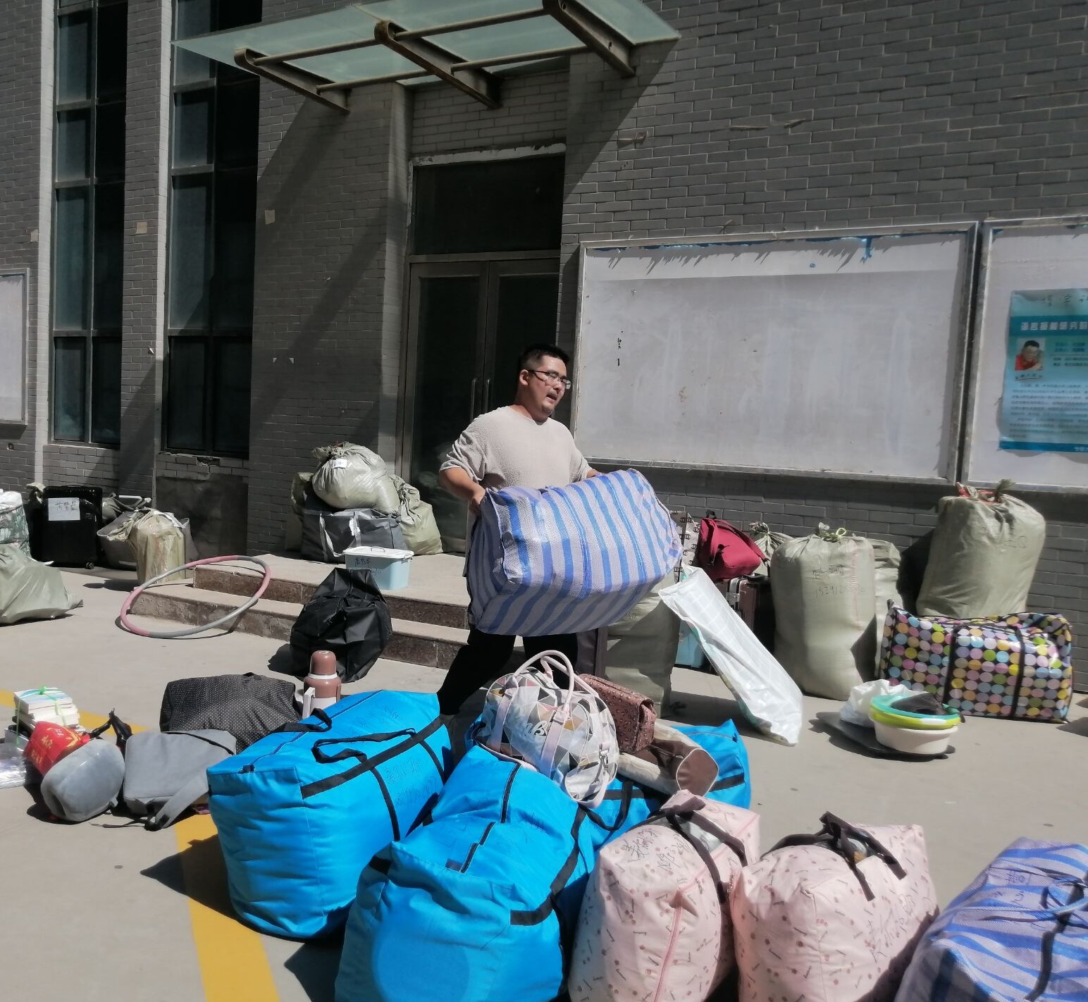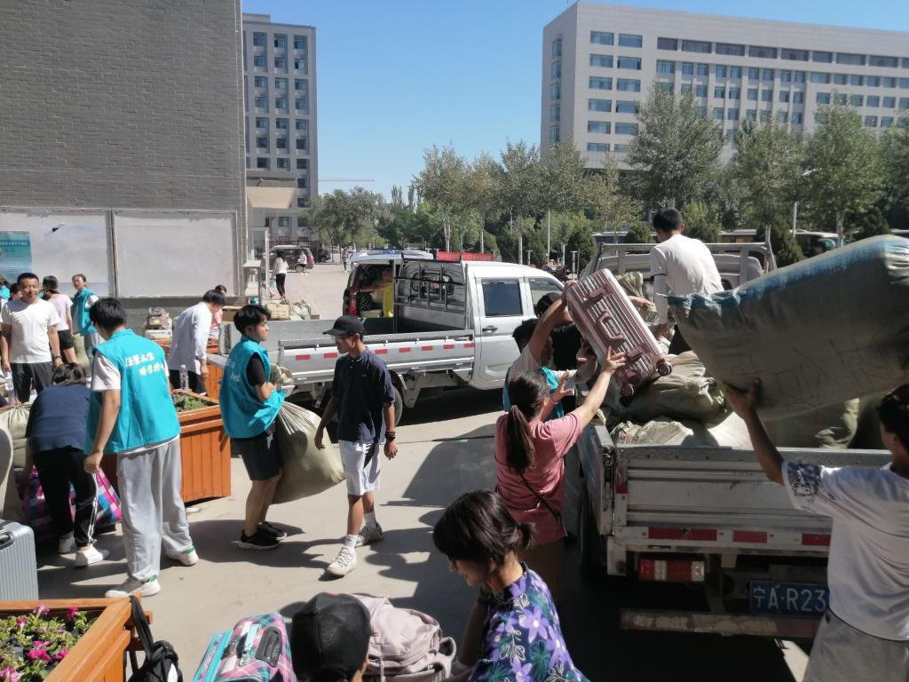 院长杨国涛,副院长张逸,学生工作办公室主任黄旭兴到场关注学生调搬宿舍情况,2018级辅导员何韶华,2020级辅导员孙文元前往现场协调管理,2018级辅导员艾萨·阿尤普则负责金凤校区的相关服务工作。搬运过程中全体师生团结一心、互帮互助,现场井然有序,呈现出欣欣向荣的青春风貌。此外,学院还组织2019、2020级志愿者帮助搬运行李,减轻现场负担,生动诠释了“经管人生,博学济世”的宗旨。