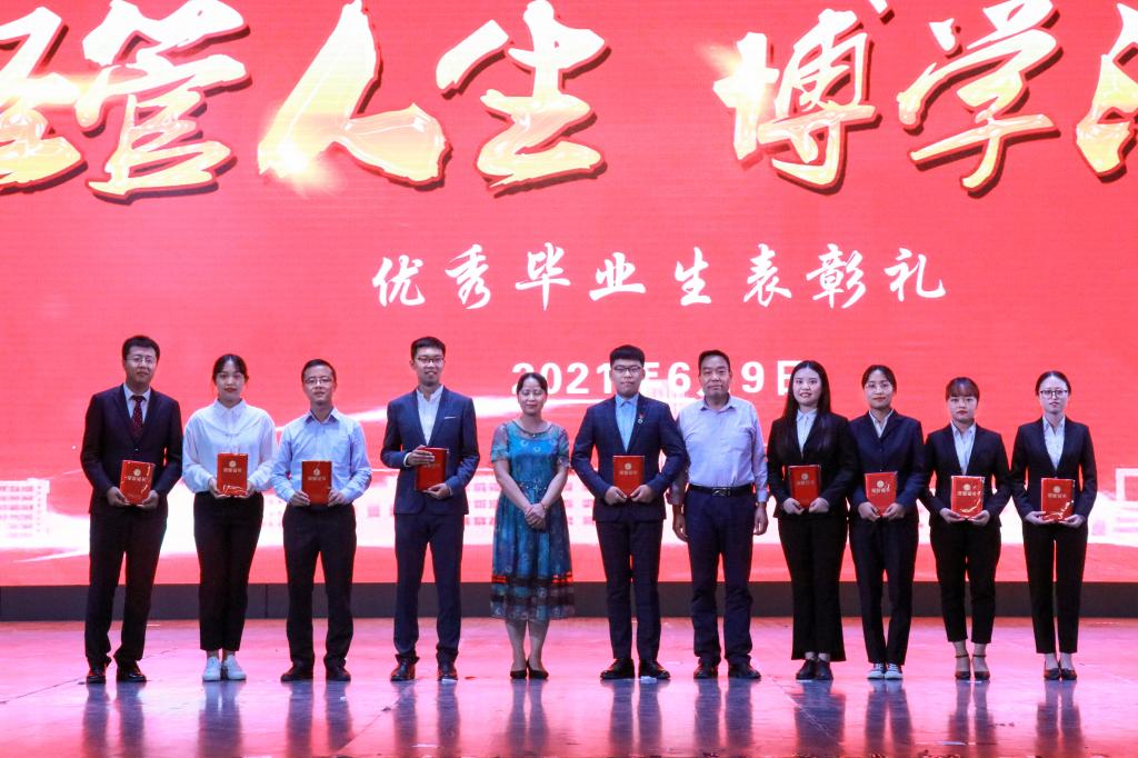 不忘初心,不负梦想;青春不朽,芳华永驻。在2021届毕业生中,涌现出了一大批优秀学子,他们在各类大赛和校园文化活动中斩获颇丰;在求学深造的道路上破浪前行。他们展示了2021届优秀毕业生的风采,发挥了先进典范的榜样力量。在优秀毕业生表彰礼上,马军宣读了2021届毕业生表彰决定后,马建宏、刘涛为受表彰本科生代表康梅、蓝双、孙小宁、刘明皇、罗忠明、马和霞、王天赐、罗丽丽、金向琴颁奖。张逸、虎兴武为研究生代表赵威、马丽娅、白小龙、王梓钰、刘书润、孙玥、丁丽、何佳、刘初脱颁奖。