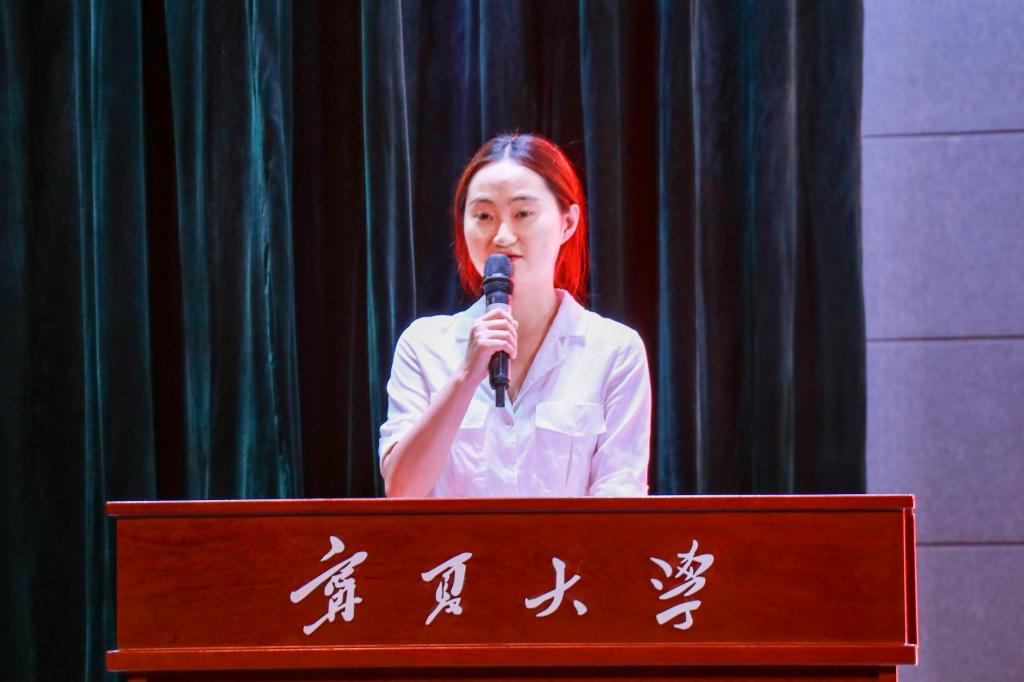 校友代表、2020届工商管理专业本科毕业生樊桂君作为校友代表发言。她回顾了大学四年的点点滴滴,美丽的金波湖、沙枣树旁的拐角楼、与奋飞女神相伴的凌云广场都是他心中永远的牵绊。她用自身的求职经历,为毕业生们提出了努力学习好专业知识、注重实践、做好自己的职业规划、坚持学习、坚持读书的建议。对于母校,她心怀热爱,对于恩师,她心存感激。她希望所有毕业生不管走到哪里,不管在什么岗位工作,都要继续填好人生的履历表,为母校争辉添彩。不管在哪里,一定要牢记校训,做睿智而富有激情、胸怀大志而脚踏实地、富有责任并勇挑重担的人!