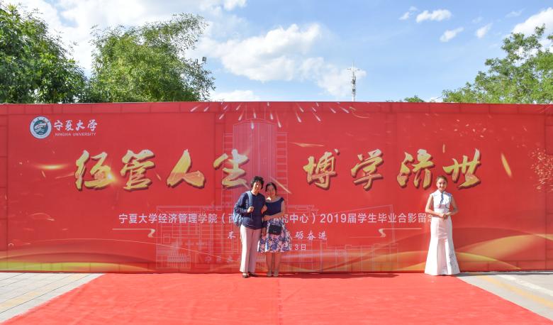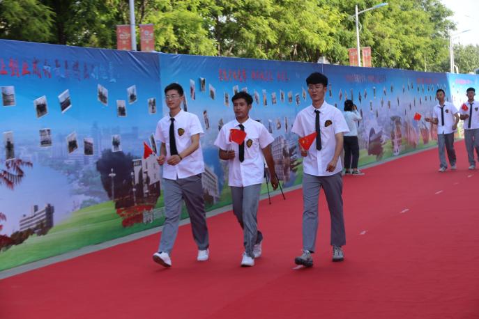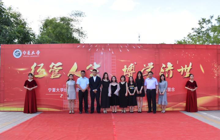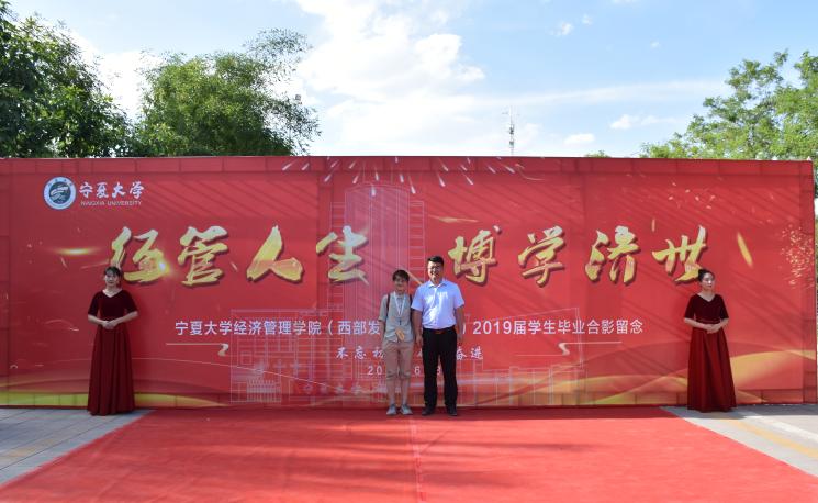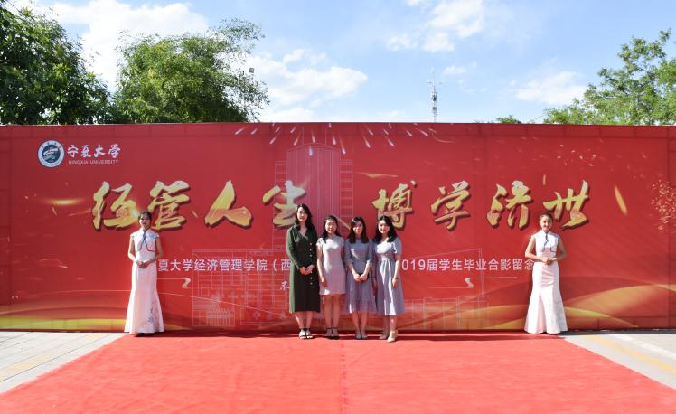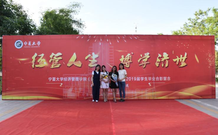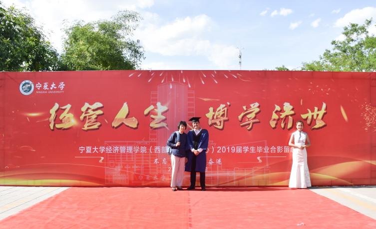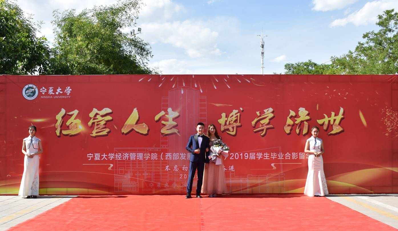 红毯两侧的背板墙上书写着习近平总书记对青年人的美好期待,张贴着经管学子大学学习生活中的精彩相片,记录着每位经管人的难忘华章。