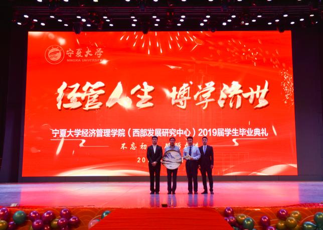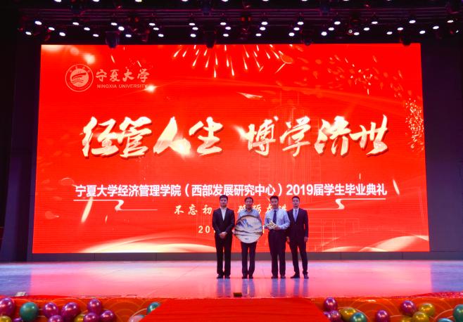 杨国涛院长、西部发展研究中心黄立军主任代表学院接受毕业生纪念品