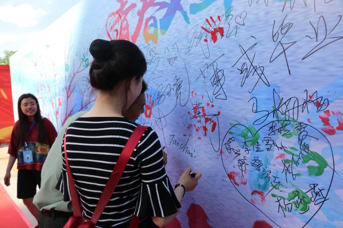 他们走过满载回忆的照片墙,在签名墙上留下独属自己的印记。