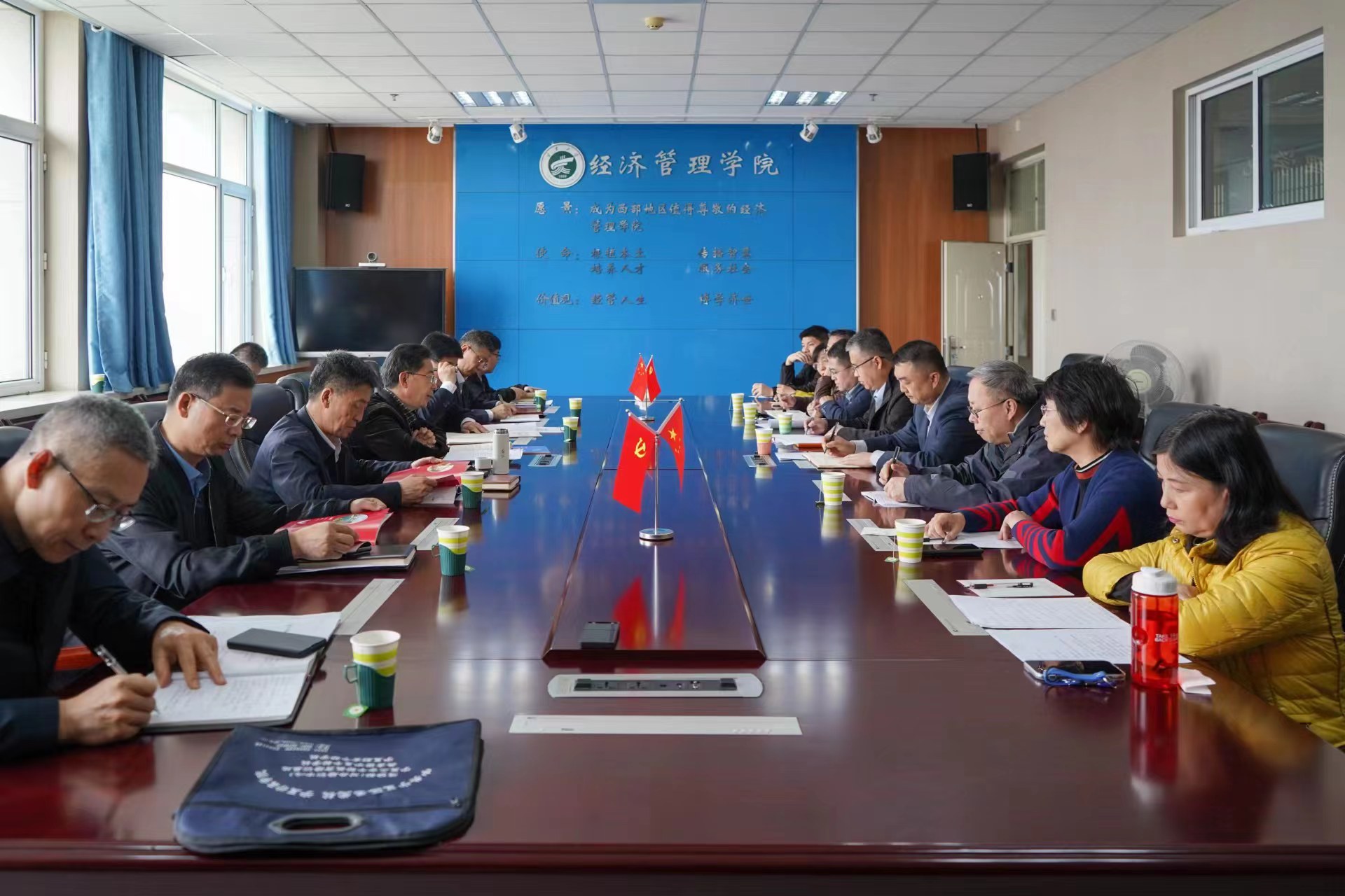 的关心和大力支持,汇报了学院主题教育安排和党建等工作。杨国涛院长从学院人才培养、学科专业、社会服务及对外合作交流等方面进行了全面的汇报。
