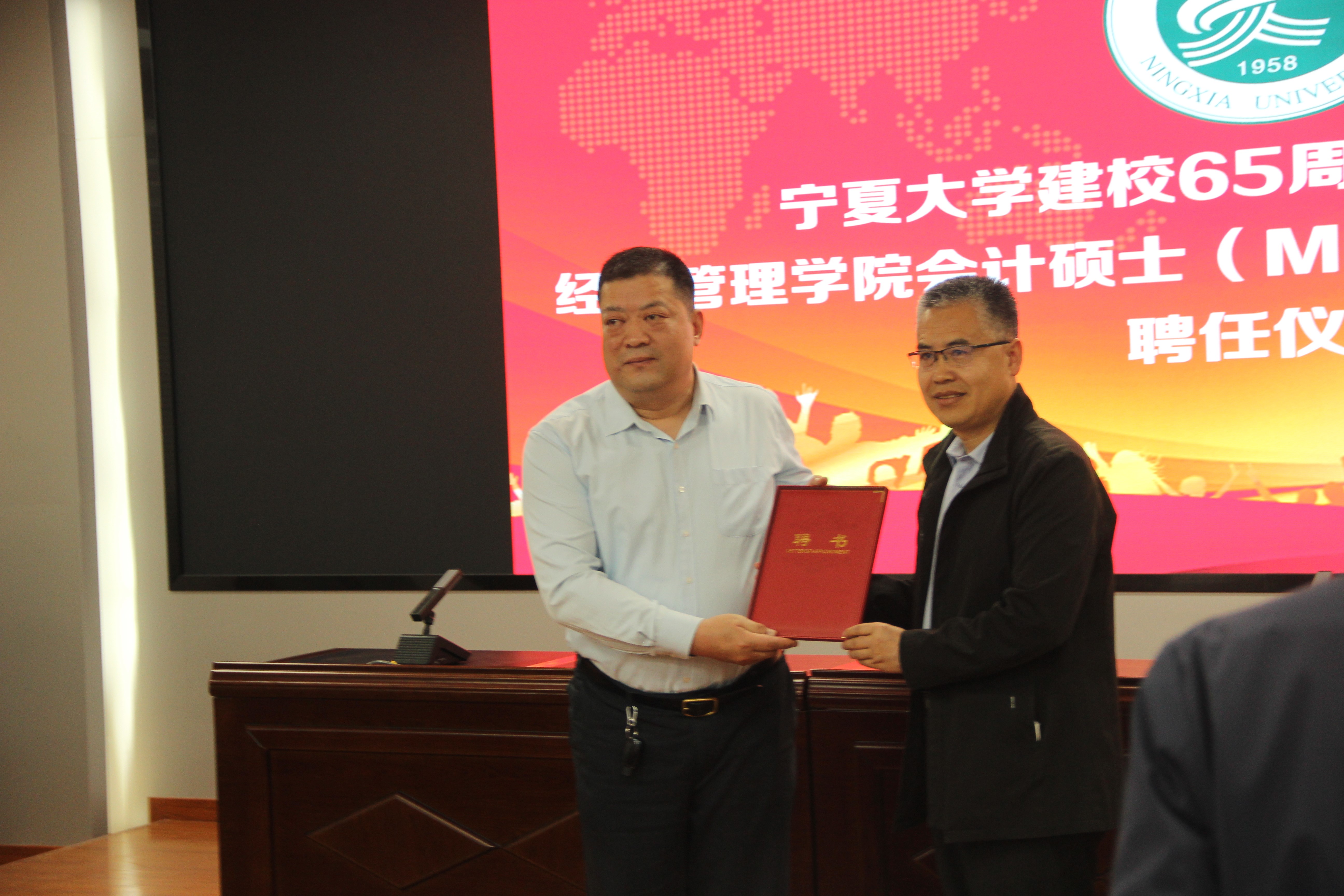 贺兰山校区文荟楼316报告厅举行,此次聘任校外导师13人。聘任仪式由学院党总支副书记、副院长仇娟东主持。