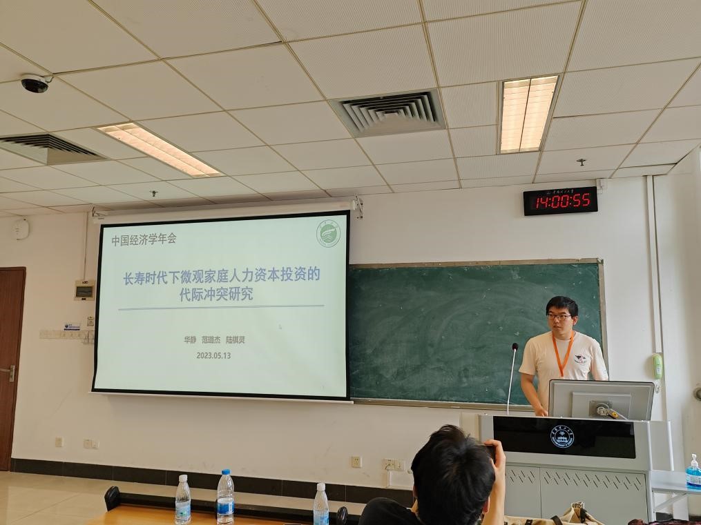 的5位宣讲者围绕DEA模型前沿方法、移民搬迁、人力资本投资、数字经济等热点话题展示研究成果。论文宣讲者互相点评、各抒己见,深入探讨学术观点。在提问交流环节,来自不同领域和院校的学者畅所欲言,与宣讲者进行学术交流和思想碰撞,会场气氛热烈而融洽。