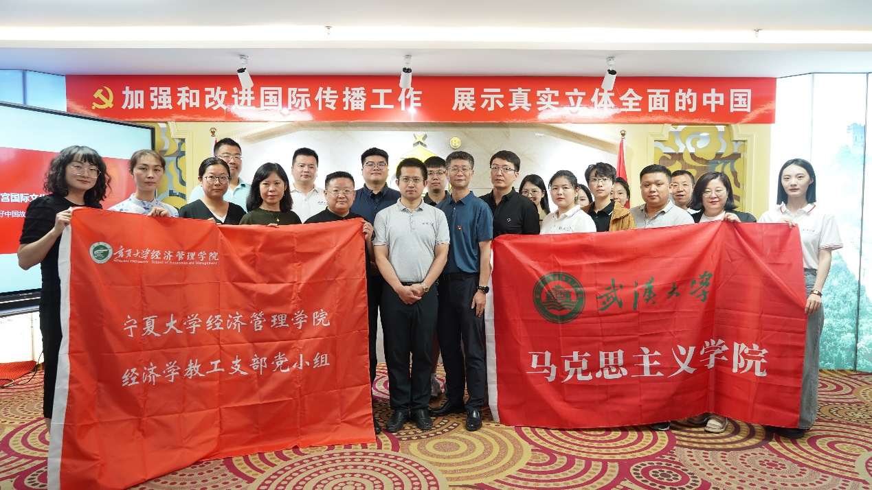 经济学教工党支部、智慧宫国际文化传播集团有限公司党支部全体党员合影留念。