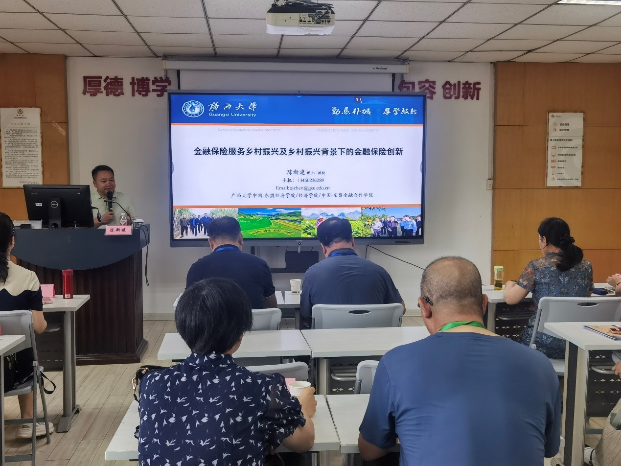上午陈新建教授讲授《金融保险服务乡村振兴及乡村振兴背景下的金融保险创新》。首先,全面系统梳理乡村振兴、农业强国和新质生产力的基本内涵、重要性及政策;其次,系统阐述全面推进乡村振兴的金融服务需求变化、金融服务乡村振兴的典型趋势特征、金融服务乡村振兴的短板和薄弱环节、金融政策支持乡村振兴的发展;最后,详细介绍广西金融保险的典型案例。