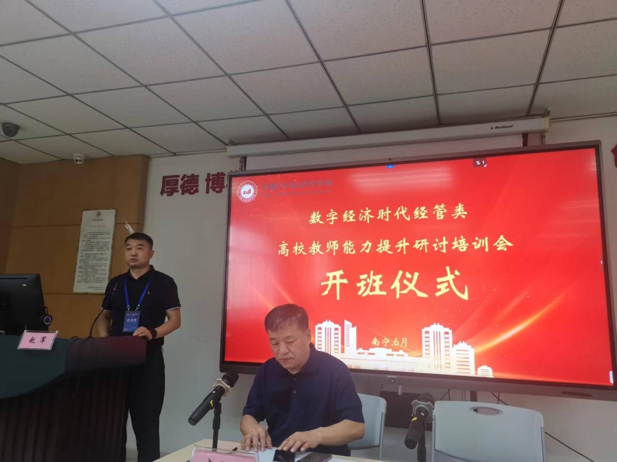 “数字经济时代经管类高校教师能力提升研讨培训会”举行开班仪式。开班仪式由广西大学中国——东盟经济学院/经济学院/中国——东盟金融合作学院培训项目负责人凌雨晴老师主持。首先,广西大学中国—东盟经济学院院长李光辉教授,对亚新体育